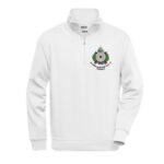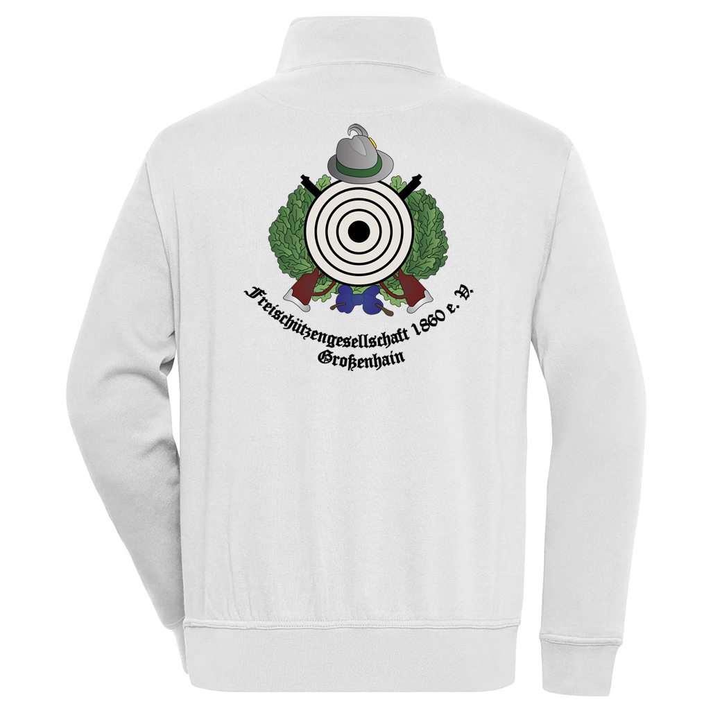 Workwear Half Zip Sweat weiß mit farbigem Logo auf Brust und Rücken – FSG 1860 e.V. Großenhain